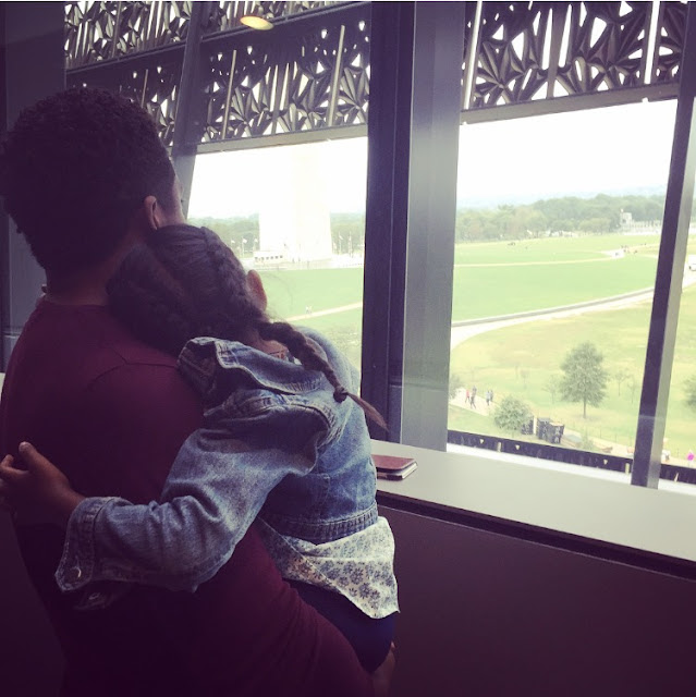 Yesterday the three (four?!) of us took a field trip down to the new Smithsonian National Museum of African American History and Culture. The tickets are incredibly difficult to secure (I believe they're pushed out to January right now), but Dr. Daddy managed to snag three when they first became available. He's been excited about the magnificent brown structure since we moved here back in late 2014, commenting on it every single time we rode by. So it was amazing to finally set foot inside and do some exploring. And exploring we did... for 3 whole hours, which apparently isn't enough time to see everything! We would've stayed longer, but the way this second pregnancy is set up... my lower back and hips were like, 'nah, homie', and then I got hungry, so we ended up at Popeye's. The museum was all the way live tho, folks (OUR people... so beautiful) everywhere with some exhibits so packed we were in there shoulder to shoulder!
